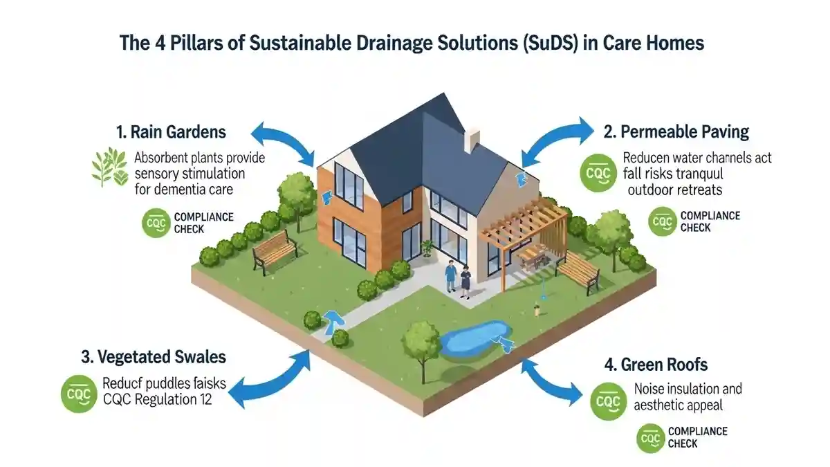 The future of sustainable drainage solutions CQC care home design is the integration of SuDS (Sustainable Drainage Systems). In Rainham, Policy EN18 of the Local Plan encourages SuDS to manage surface water runoff, which often plagues the surrounding area.